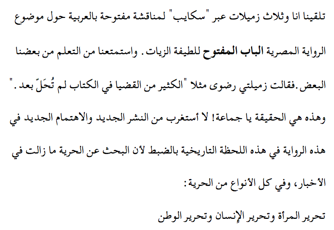 مناقشة مفتوحة: الباب المفتوحFebruary 26, 2018 in Modern Litالمقتبس التالي من صفحة ٣٤٦ من الباب المفتوحمصدر الصورة← Previous New Arabic ClassNext → In Memory of Emily Nasrallah