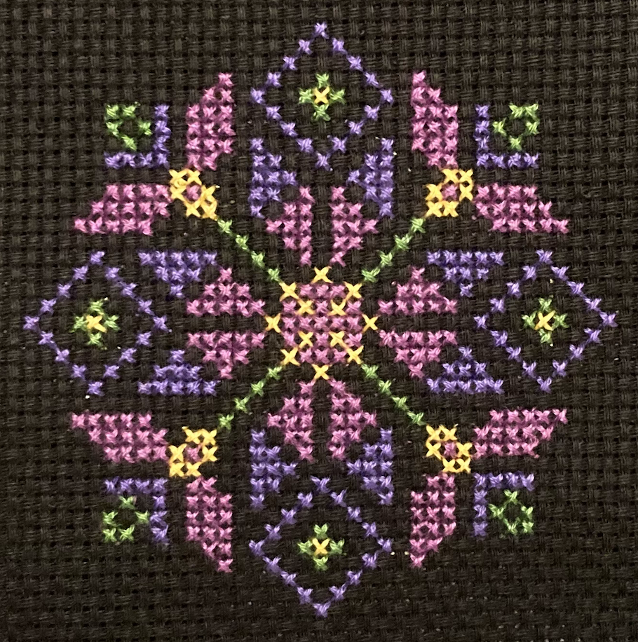 About her work, she adds, “I’ve been designing embroidery patterns for myself for decades, mostly because I love stitching but don’t like many of the modern patterns that are widely distributed. I didn’t “go public” with my patterns until 2020, when I opened my Etsy shop. I’m very interested in the global history of needlework, and my designs are inspired by traditional motifs from around the world. I especially want today’s stitchers to be exposed to embroidery traditions from regions that haven’t received as much attention in the modern stitching community. But I don’t claim to be producing accurate replicas of traditional designs; I adapt, modify, embellish, and combine the traditional elements to produce a design that I think will speak to modern stitchers while still capturing the spirit of the traditional sources.”