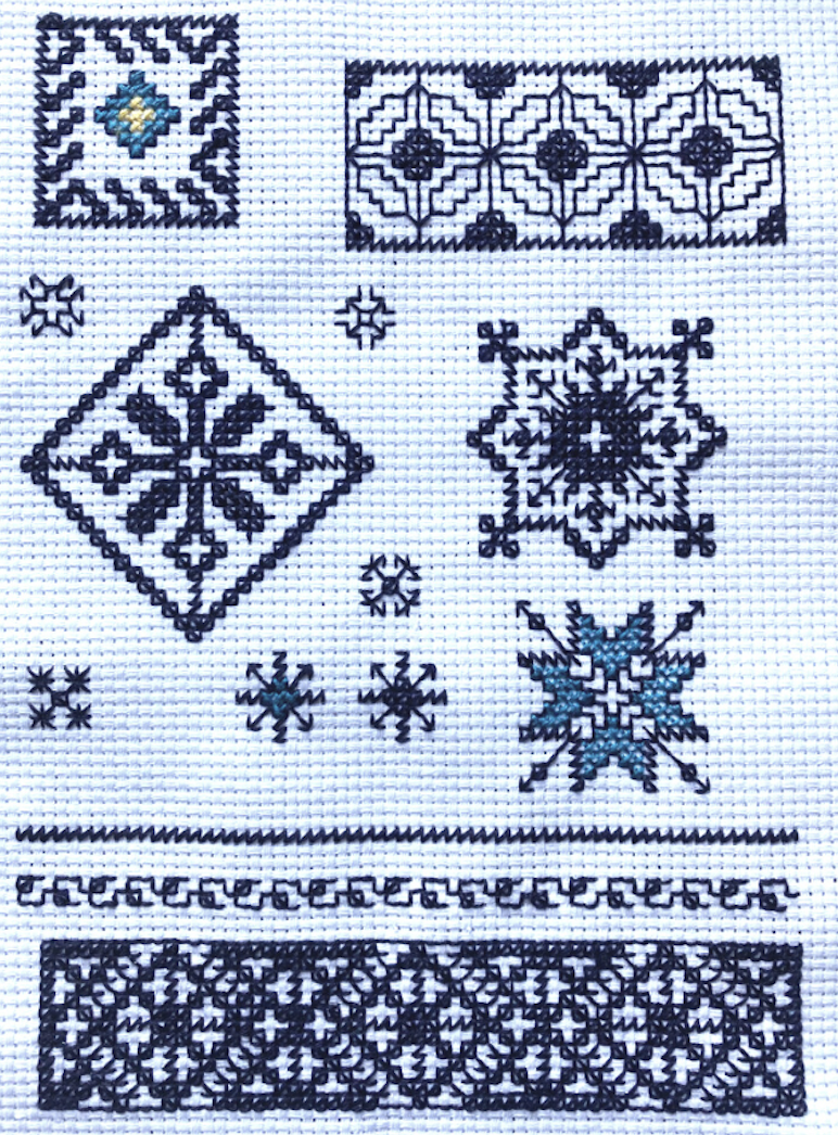 About her work, she adds, “I’ve been designing embroidery patterns for myself for decades, mostly because I love stitching but don’t like many of the modern patterns that are widely distributed. I didn’t “go public” with my patterns until 2020, when I opened my Etsy shop. I’m very interested in the global history of needlework, and my designs are inspired by traditional motifs from around the world. I especially want today’s stitchers to be exposed to embroidery traditions from regions that haven’t received as much attention in the modern stitching community. But I don’t claim to be producing accurate replicas of traditional designs; I adapt, modify, embellish, and combine the traditional elements to produce a design that I think will speak to modern stitchers while still capturing the spirit of the traditional sources.”